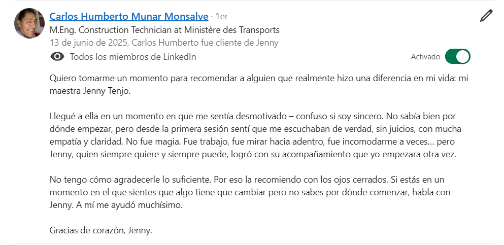 Hoy soy Jenny Tenjo, entrenadora corporal para líderes y equipos comerciales.
